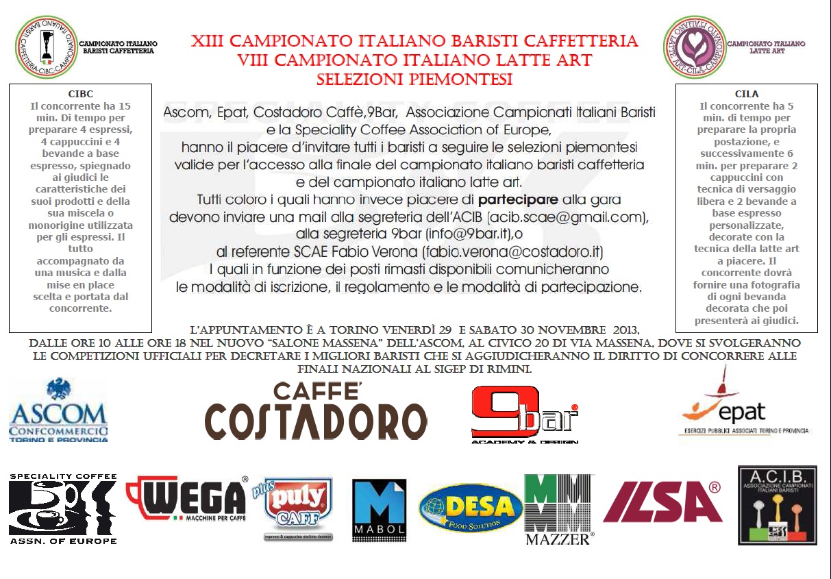 SELEZIONI PIEMONTESI PER IL CAMPIONATO NAZIONALE DI CAFFETTERIA E LATTE ART.