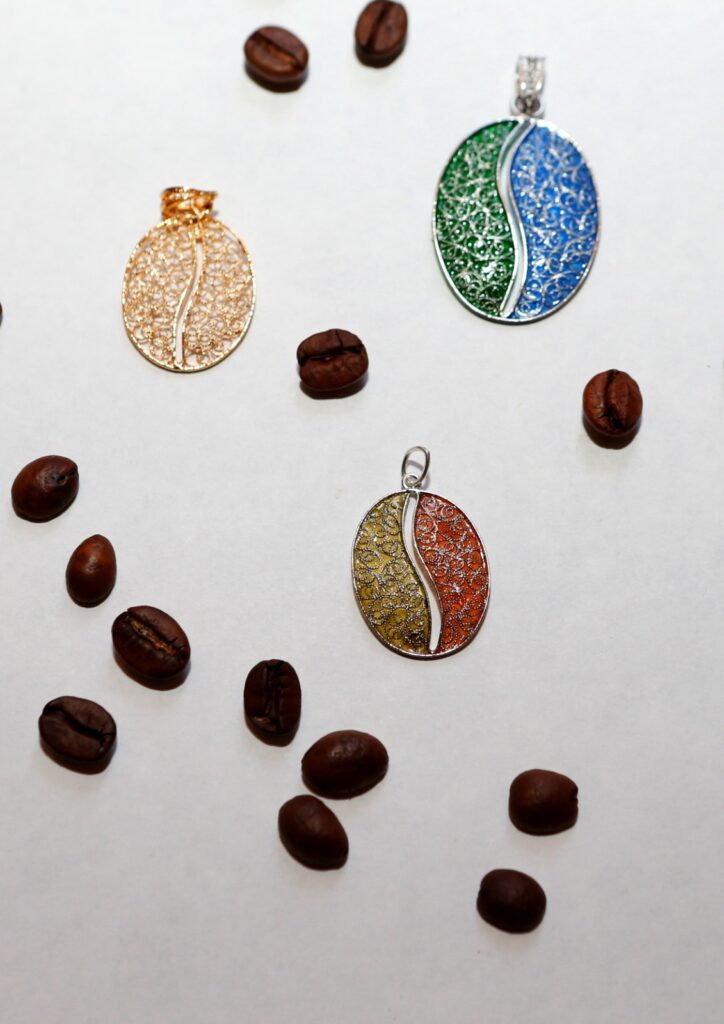 Il secondo è quello di regalare un gioiello che unisca mondi e passioni: il chicco di caffè di Pietro Marmo, un artista contemporaneo appassionato di caffè che realizza gioielli ed oggetti dedicati alla bevanda più internazionale che ci sia, la seconda bevuta dopo l’acqua.