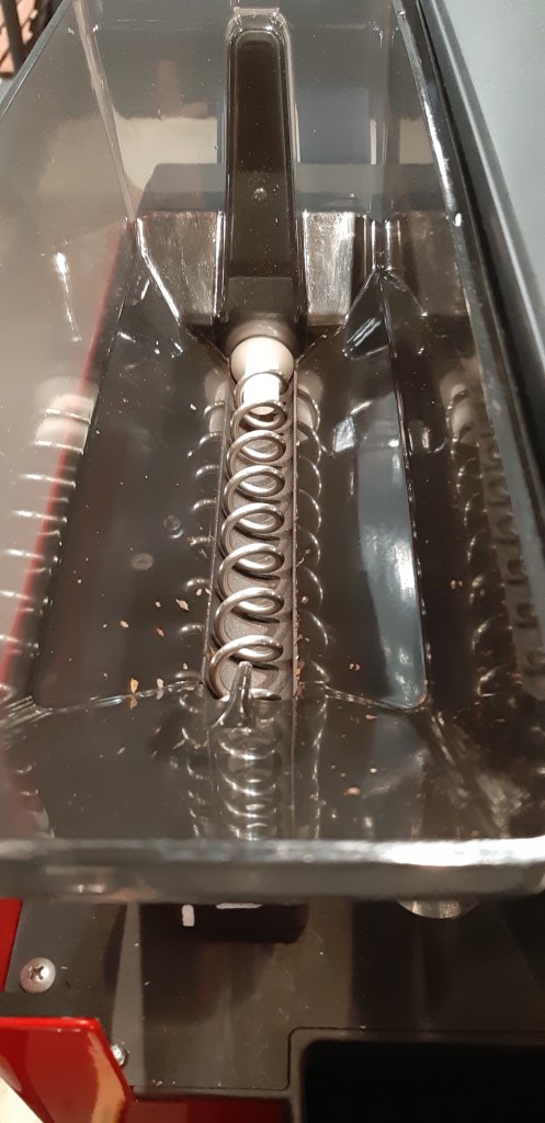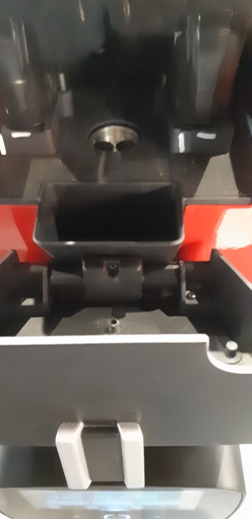 La particolarità dell’X One, a differenza di tutti i grinder gravimetrici in commercio, è quella di pesare i grani prima della loro macinatura. Avete capito bene, proprio come si fa sovente con gli specialty coffee, che li pesiamo in un bicchierino prima di macinarlo, ma lo fa da solo, grazie ad un sistema di trasporto dei grani tramite una specie di coclea interfacciata con delle bilance in linea (questo per dirla semplice….)!