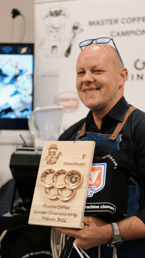 Al vincitore sono andati i complimenti di tutti i colleghi, la fantastica targa realizzata appositamente con materiali riciclati dalla cooperativa sociale “Il Parallelo” ed i premi degli sponsors; in particolare sarà installato presso la Hardy Academy di Assago un grinder gravimetrico Solo messo in palio dalla Grindie!