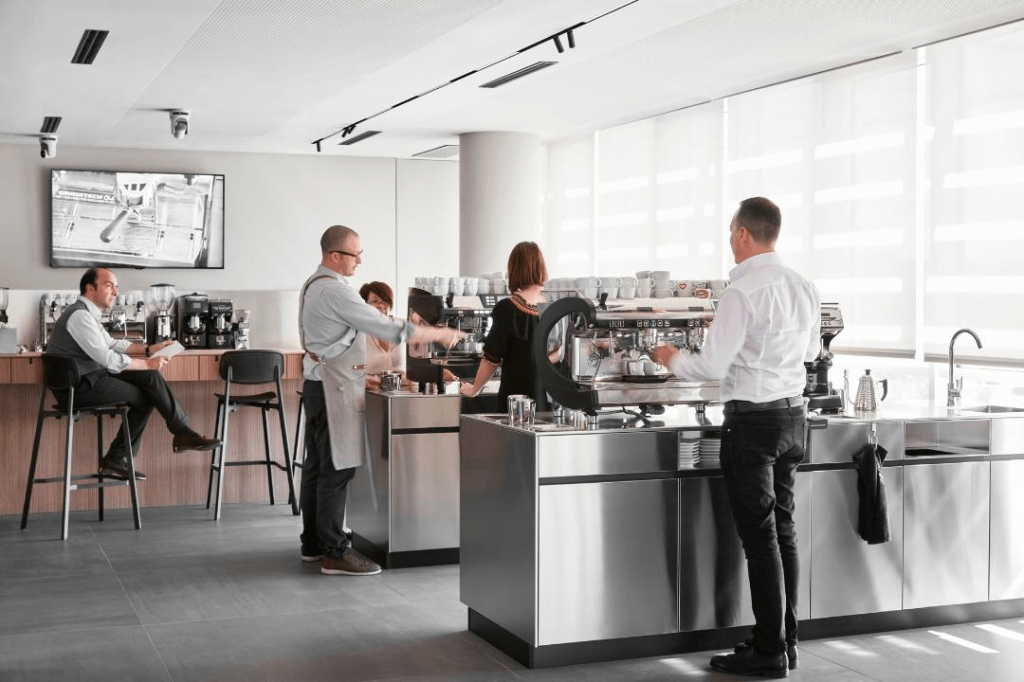 Le postazioni saranno dotate di ogni accessorio necessario al barista per lavorare nelle migliori condizioni attraverso i prodotti di Motta Metallurgica e Repa, leader nel settore, mentre la pulizia, essenziale per non avere interferenze gustative nella bevanda, sarà realizzata con i prodotti italiani della Pulycaff. Le attrezzature utilizzeranno dell’acqua filtrata attraverso dei depuratori Brita di ultima generazione.