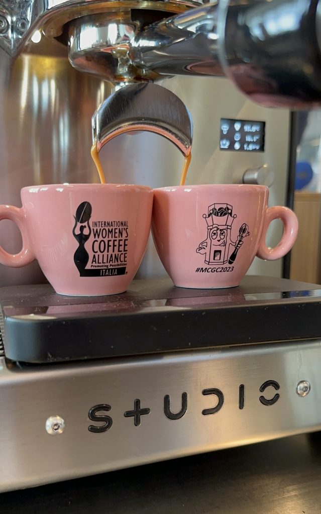La giornata è stata anche l’occasione per presentare le nuove tazzine realizzate da Ipa porcellane in edizione speciale per questa edizione del #MCGC2023 in colore rosa in omaggio all’IWCA Italia.