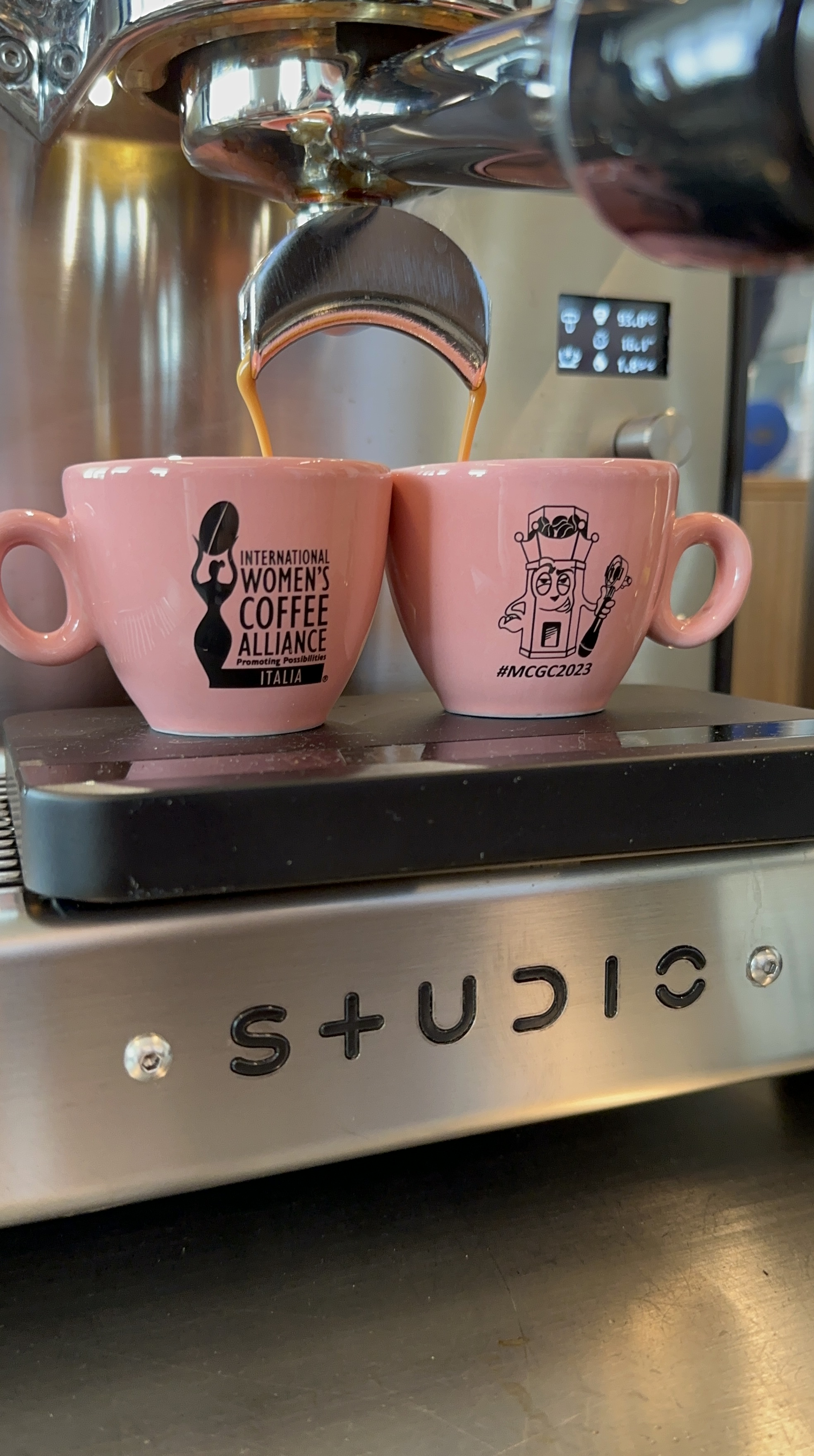 La giornata è stata anche l’occasione per presentare le nuove tazzine realizzate da Ipa porcellane in edizione speciale per questa edizione del #MCGC2023 in colore rosa in omaggio all’IWCA Italia.