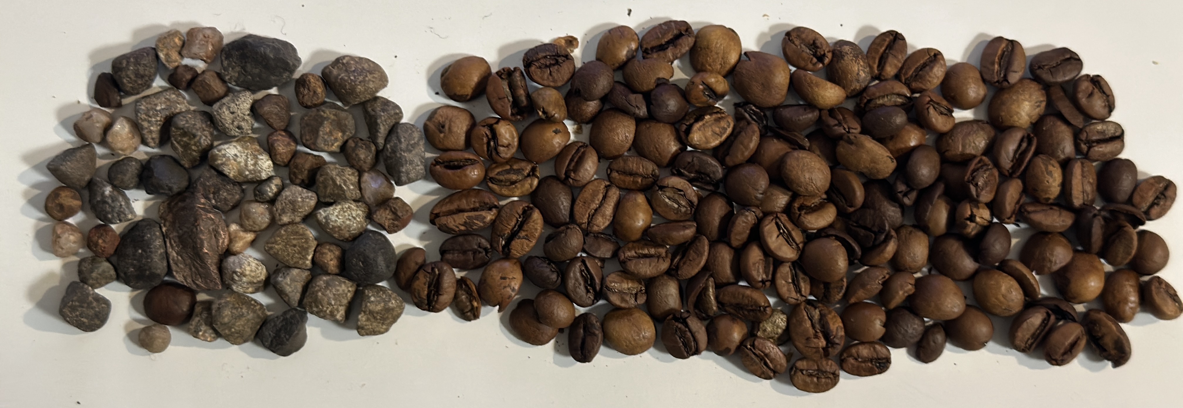 783g di rimanente caffè “buono” con un totale di 217g di caffè o di componenti estranei che per legge possono essere presenti in un kg di caffè torrefato!!