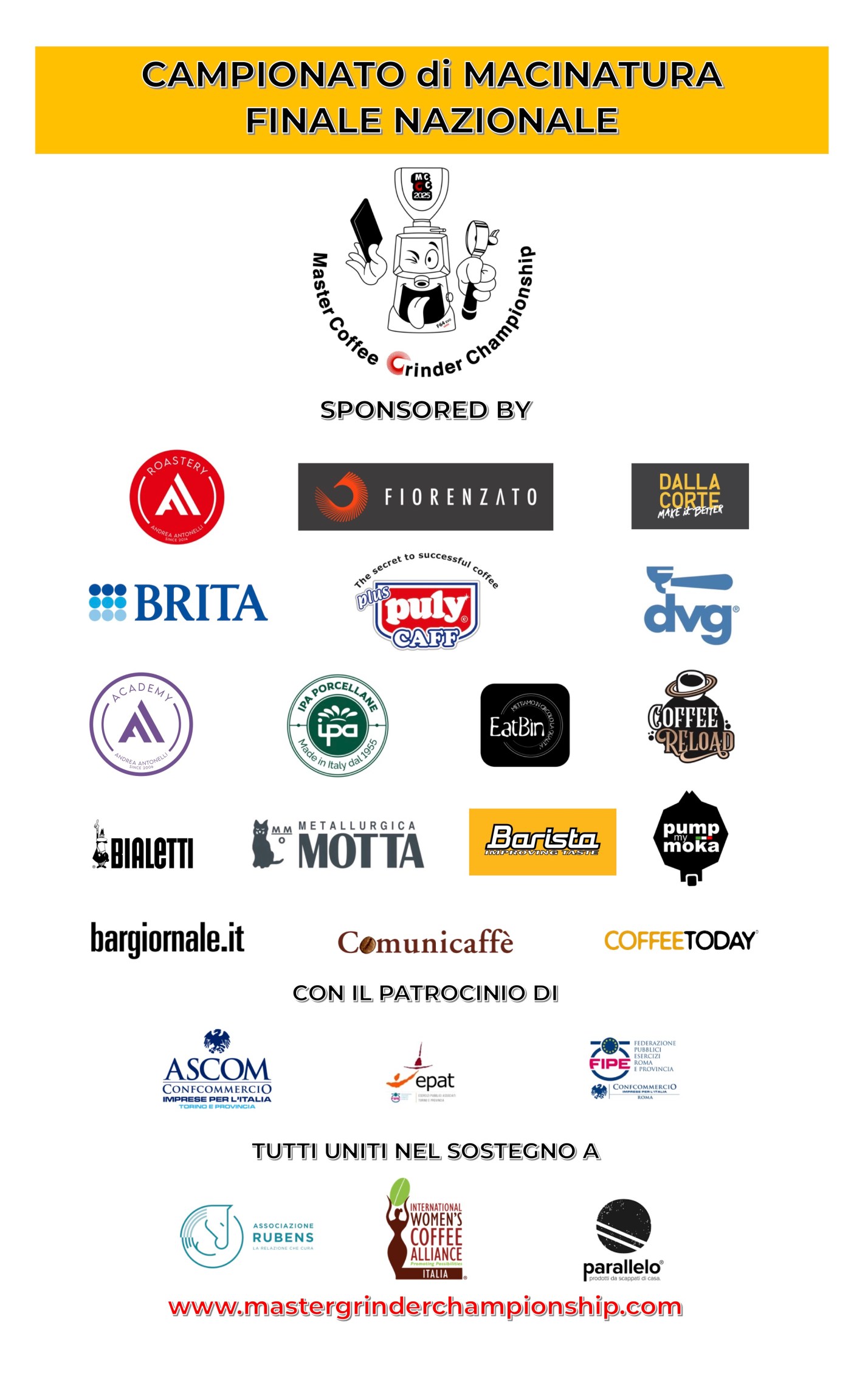 Fiorenzato – Dalla Corte – IPA Porcellane – Brita – DVG De Vecchi – Pulycaff – Antonelli Academy – Metallurgica Motta – Bialetti – Pump My Moka – Bargiornale – Barista Improving Taste (BIT Filtri) – Antonelli Specialty Coffee – Costadoro Caffè – Brazilcafè – Santino Caffè – Parallelolab