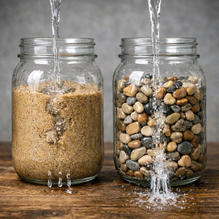 immagina di versare acqua su della sabbia e poi su dei sassolini. La sabbia rallenta il flusso, i sassolini lo accelerano.