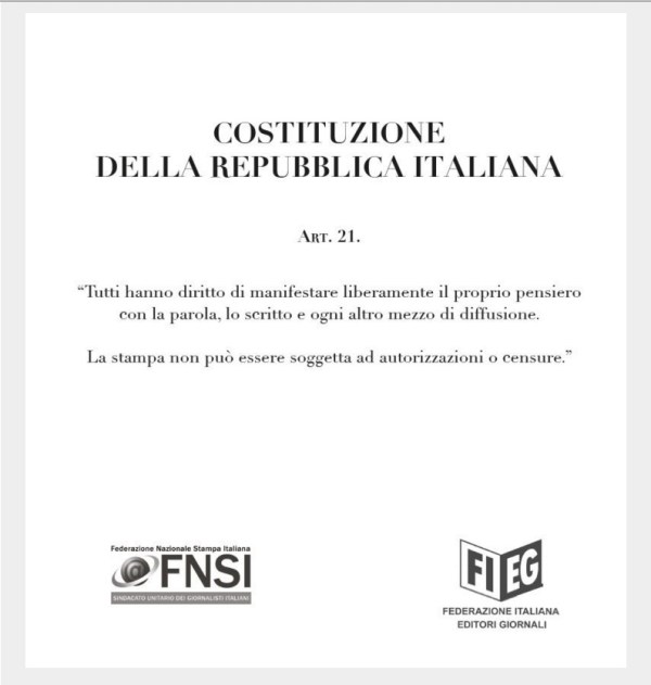 L’articolo 21 della Costituzione, editori e giornalisti per una informazione libera, corretta e consapevole!