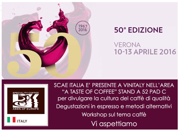 SCAE ITALIA PRESENTE A VINITALY 2016 - dal 10 al 13 aprile padiglione C area "A TASTE OF COFFEE" A 52 Anche quest'anno SCAE ITALIA è presente a Vinitaly, giunta alla 50a edizione quale Associazione ambasciatrice del caffè di qualità. La formula "A TASTE OF COFFEE" prevede degustazioni di caffè in espresso e metodi alternativi,... Continua a leggere →